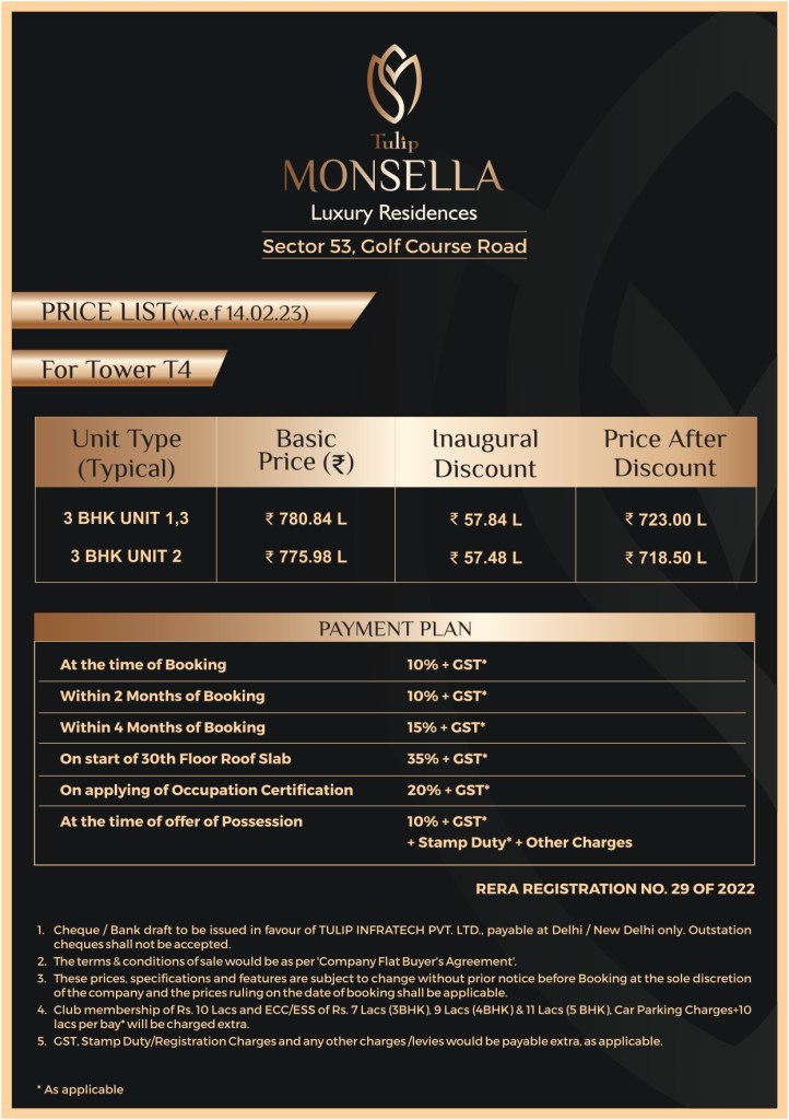 Yes, Tulip Monsella is a RERA registered project, ensuring transparency and compliance with real estate norms.